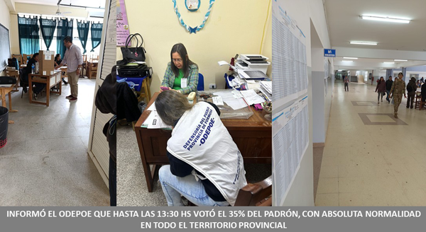 Durante dicha actividad, el -ODEPOE- verificó las condiciones de los locales de votación, constatándose que, todos los establecimientos relevados, se encontraban en óptimas condiciones, para que los ciudadanos puedan emitir con normalidad sus sufragios. Se destacó la presencia de, Directivos Escolares – Delegados Judiciales, Efectivos del Ejército dentro de los establecimientos y agentes de las fuerzas provinciales, fuera de los mismos, así como el arribo dentro de la franja horaria establecida, de los Agentes del Correo Argentino, encargados exclusivos del traslado de urnas y del material electoral, pese a las inclemencias del tiempo.