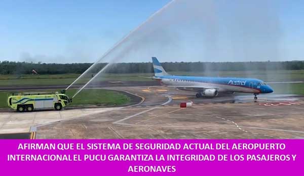 -Se realizó este miércoles, recepción al primer vuelo en el Aeropuerto “El Pucú”, con el funcionamiento de la Unidad Oshkosh (camiones de bomberos aeroportuarios), lo que desmiente las denuncias de sectores gremiales y políticos que han puesto en tela de juicio infundadamente, la seguridad de los vuelos y el riesgo de la categoría del aeropuerto, pretendiendo frenar las obras de remodelación. Por ello, se dio inicio a una investigación por la Policía de Seguridad Aeroportuaria (PSA), ante las denuncias falsas y tendenciosas, que buscan desacreditar un proyecto que redundará en beneficio de la provincia de formosa y de todos los usuarios que harán uso de la nueva terminal, la cual tendrá 3.700 m2-