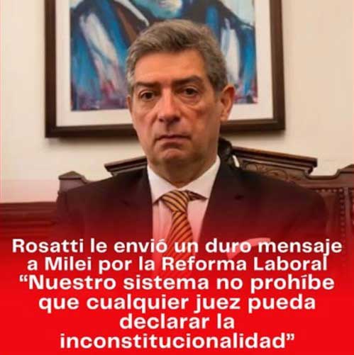 El mismo defendió los cambios en materia de indemnizaciones –que según el proyecto serán pagados con fondos de la ANSES y de las AUH– y la reducción de aportes patronales – que va a desfinanciar las cajas previsionales–, pero sostuvo que la creación de empleo depende del crecimiento económico y no de un cambio en la normativa laboral. “Si no hay una etapa de crecimiento económico sustentable, no hay inversiones ni generación de empleo”. La posibilidad de que la instrumentación final de la reforma se trabe en los tribunales y termine definiéndose en la Corte, como sucedió con el capítulo laboral de la Ley Bases, es lo que inevitablemente sucederá con esta reforma. Rosatti explicó que, los controles de constitucionalidad pueden ser concentrado o difuso. Concentrado es cuando se concentra en un solo Tribunal.